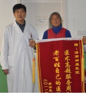 【有效治疗患者家属感激送锦旗】